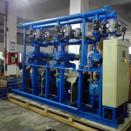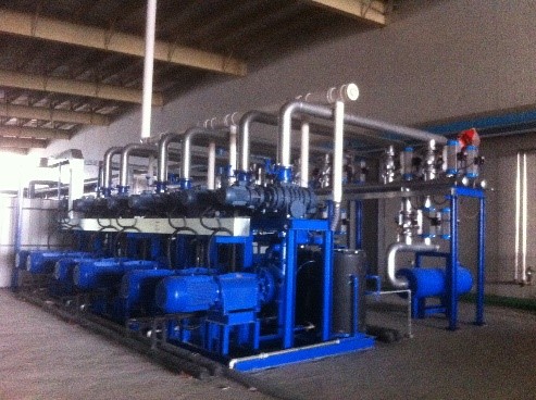 先起動前級液環(huán)真空泵,當(dāng)液環(huán)真空泵將系統(tǒng)壓力抽到羅茨真空泵的起動壓力時再逐級起動中間